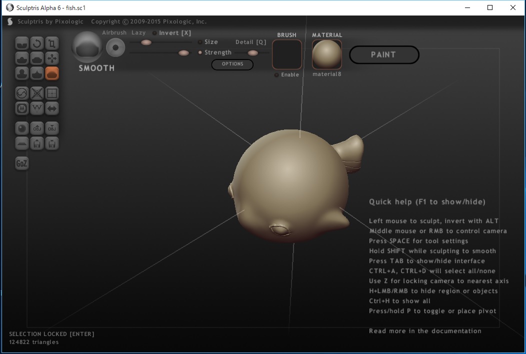 現在大阪市内で3Dのモデリング講座は行われていないので此花区から1時間かけて生徒さんが来られました。 今日はモデリングソフトの基本操作を説明し、最後に簡単なキャラクタを作成しました。 デフォルメされた魚のキャラクタです。 初日に何らかの形ができることでこれからの可能性が見えてこられたようです。 楽しく創作する講座としては、まずまずの船出です。