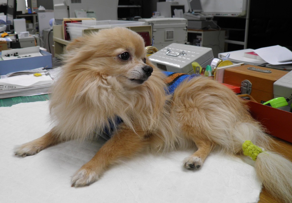 ロングコートチワワの「グー」です。 年齢不詳ですが、見かけ以上に歳をとっています。 もともと人に慣れ難い犬種なのですぐに吠えてしまいますが、看板犬を目指して頑張っています。 できればそっとしておいてほしいと思うのですが、みんな頭をなでに来るので困っています。 吠えても噛むことはないので、ご安心ください。 犬が苦手な方は、スタッフにお申し出ください。